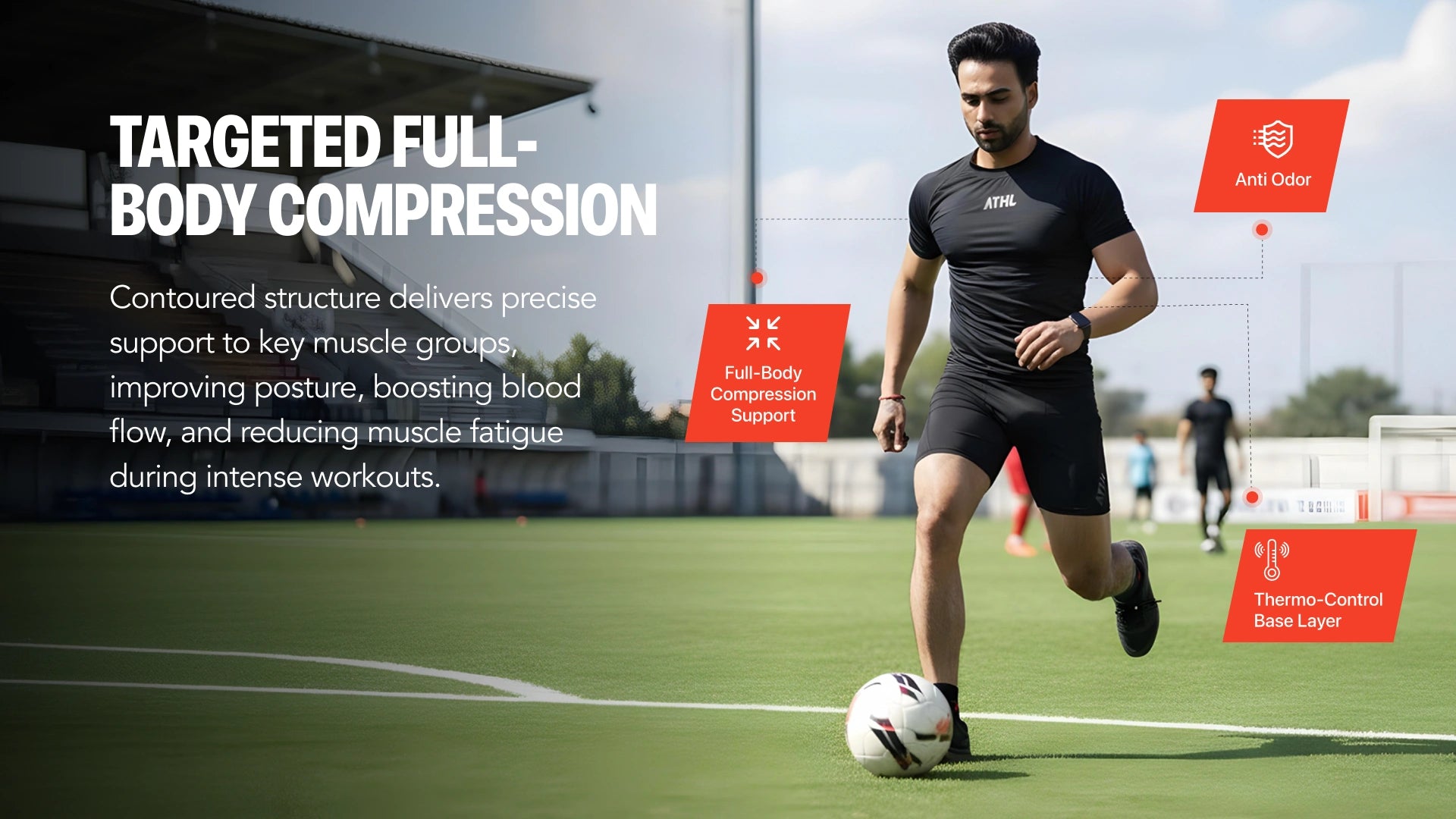 - Baselayer Technology β Enhances endurance by maintaining optimal body temperature. Built with breathable fabric, compression support & quick-dry tech for peak performance.
